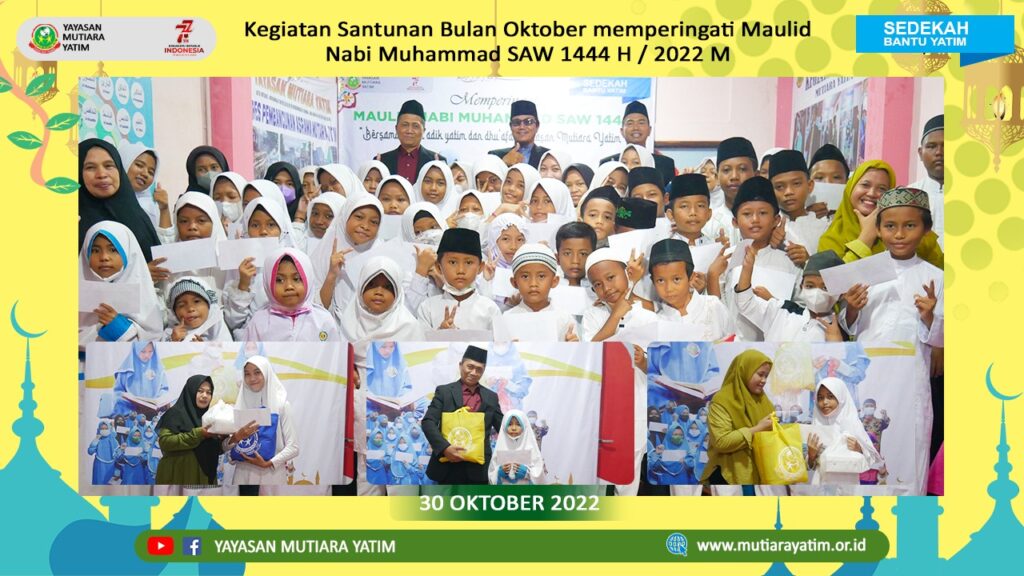 Alhamdulillah kegiatan rutin santunan bulanan memperingati Maulid Nabi Muhammad SAW 1444 H / 2022 M telah usai. Pesan yang tersirat